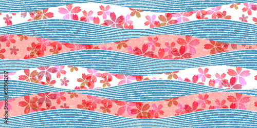 © KUU, Fototapeta premium 桜 和柄 水彩 背景