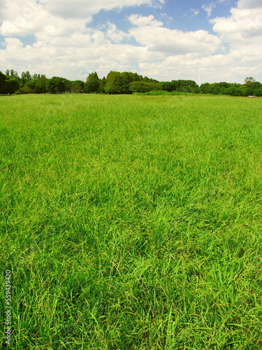 Obraz premium メヒシバとオヒシバの草原のある初秋の水元公園風景