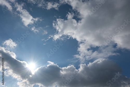 Fototapeta premium 雲の切れ目から太陽が光をさし、光芒が地に降りる。