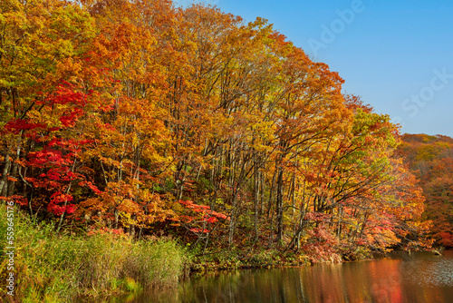 © 穴井 欽哉, Fototapeta premium 紅葉の裏磐梯・大沢沼