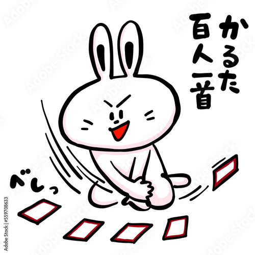 Obraz premium カルタ取りをしているウサギ