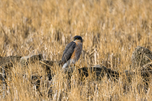 © cat_smile, Obraz premium 冬の田んぼに潜むハイタカ