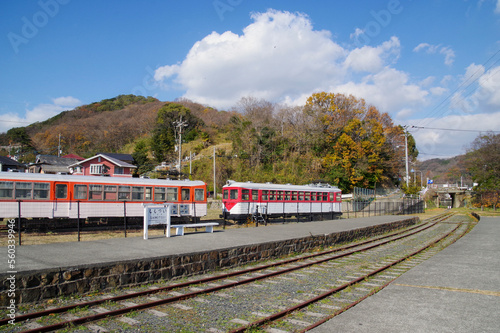 © y.tanaka, Obraz premium 廃線後も残る下津井駅のプラットホームと車両