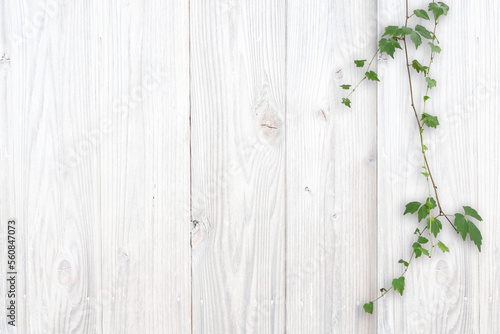 Fototapeta premium 木目背景とグリーン