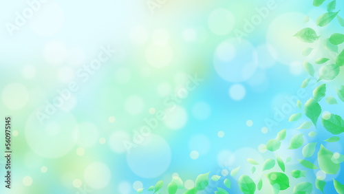 Obraz premium 緑の葉とキラキラ光輝く背景イラスト