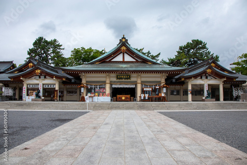 Naklejka premium 雨の日の広島護国神社の本殿