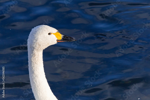 Fototapeta premium 水面から何かを見つめるコハクチョウ