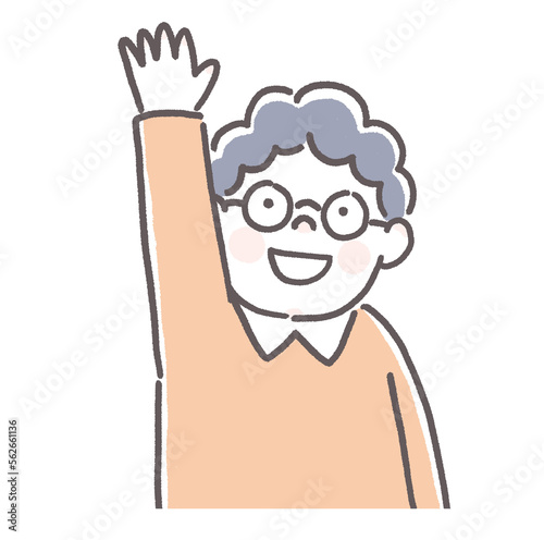 © Tomo Miura, Obraz premium 手を挙げる男の子