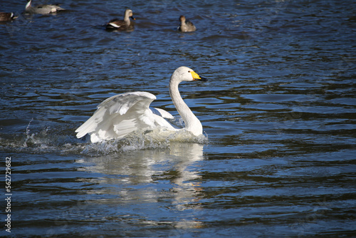 Fototapeta premium 羽根を広げだすハクチョウ