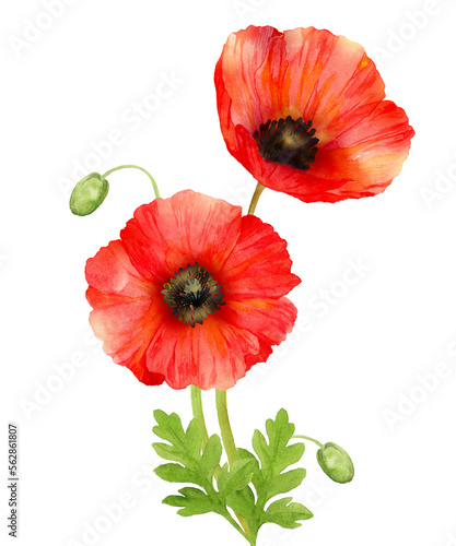 Obraz premium 赤いオリエンタルポピーの水彩画