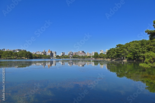 © Kinapi, Obraz premium 大濠公園「菖蒲島から望む大濠池」