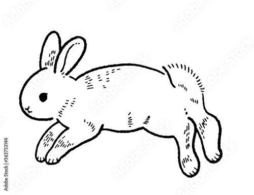 © kuromily, Fototapeta premium レトロな走るウサギの線画イラスト素材