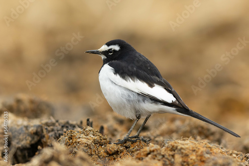 Obraz premium 土の中の餌を探すセグロセキレイ