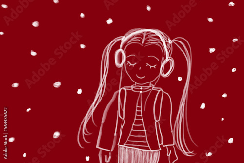 Fototapeta premium 雪の日、ヘッドフォンと女の子