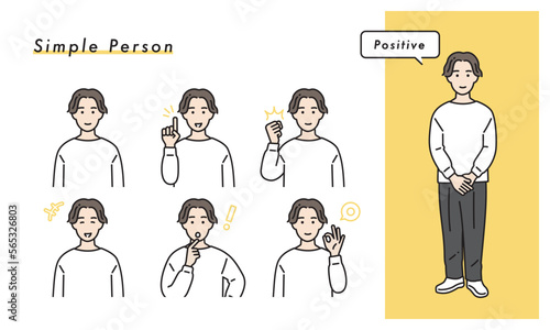 © sasamidaisuki, Naklejka premium シンプルな男性のポジティブな表情セット イラスト素材