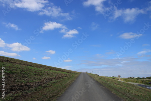 Fototapeta premium 秋の青空と雲のある江戸川の土手の風景
