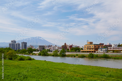 Obraz premium 岩手県盛岡市の風景 雫石川と岩手山