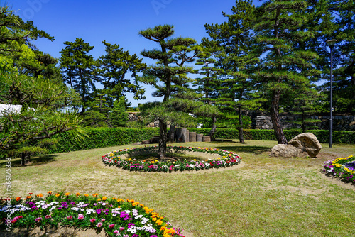 Obraz premium 花いっぱのまちづくり 春の高松城玉藻公園(香川県高松市)