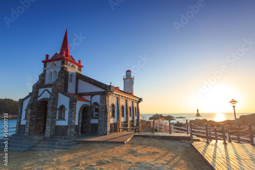 Obraz premium 부산시 기장군 죽성성당의 일출