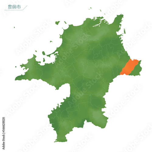 © ころころ, Obraz premium 水彩風の地図 豊前市