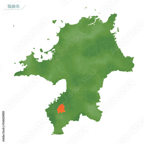 © ころころ, Obraz premium 水彩風の地図 筑後市