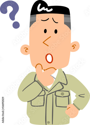 © haru_natsu_kobo, Obraz premium 疑問を感じる作業着を着た若い男性の上半身