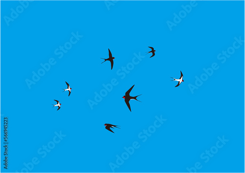Fototapeta premium 青空に飛ぶツバメのイラスト