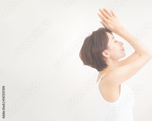 Obraz premium 健康的なアジア人女性のビューティーポートレー/スタジオ撮影/30-40代