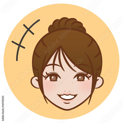 Fototapeta premium ブラッシュペンで描かれたイラスト / アップスタイルの女性 笑顔のアイコン