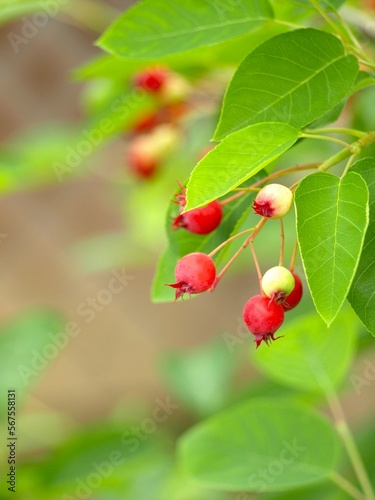 © yuri-ab, Obraz premium 庭のジューンベリーの実のクローズアップ