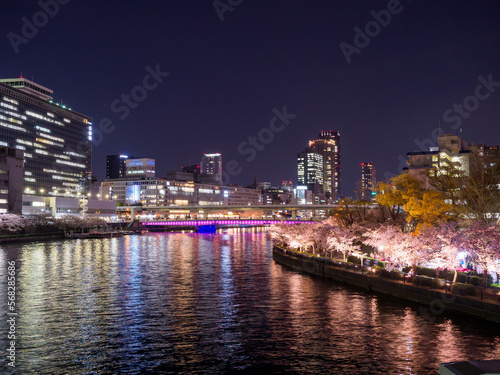 © Masahiro, Obraz premium 天満橋からの夜桜