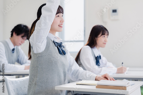 © maroke, Obraz premium 授業中に手を挙げる女子高生