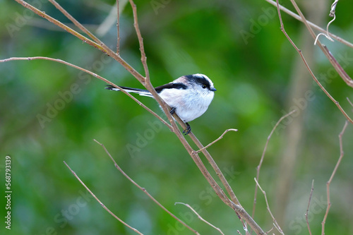 Fototapeta premium 公園で見られる身近な自然のアイドル、かわいい小鳥、エナガ