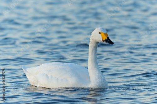 Fototapeta premium 薄暗がりの中のコハクチョウ