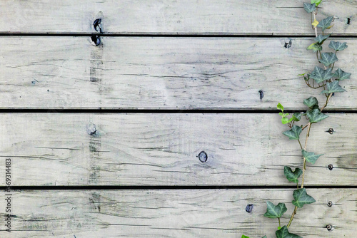 Fototapeta premium 木目背景とグリーン