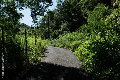 © Cuculus, Obraz premium 真夏の田舎道。周囲は藪に覆われている。