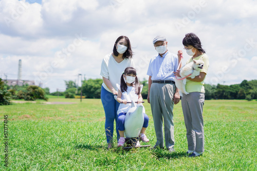 Fototapeta premium マスクをして散歩をする家族