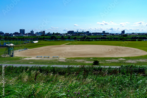 © Michiyuki Nishimura, Obraz premium 河川敷の野球場