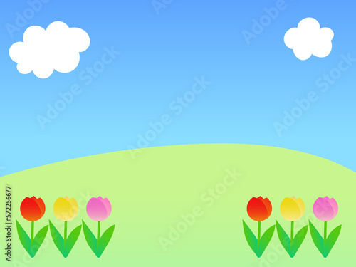 © koharu586, Obraz premium チューリップと青空と野原の背景イラスト 4:3