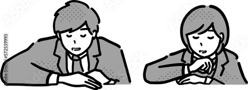 © ひとりごと, Naklejka premium 上から感想をつぶやく高校生男女のイラストセット