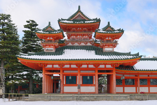 © 欣也 原, Fototapeta premium 積雪の京都市平安神宮 白虎楼