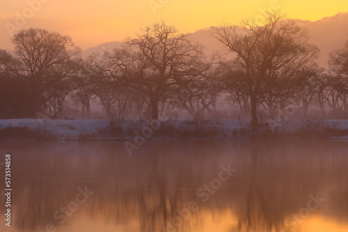 Obraz premium 岩手県北上市 朝焼けの冬景色
