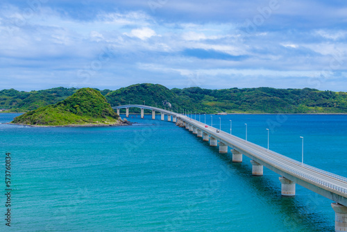 Obraz premium コバルトブルーの美しい海に伸びる角島大橋