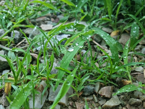 © JANYA 잔야, Obraz premium 잡초와 이슬