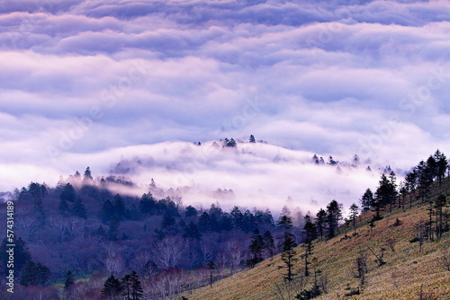 © itoh masako, Fototapeta premium 早朝の雲海に浮かぶ森(美幌峠よりー屈斜路湖)