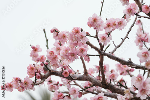 Obraz premium 寒い日が続くが、梅の花が綻び始めた。背景をクリアに処理。神戸市内の公園で2月初旬に撮影