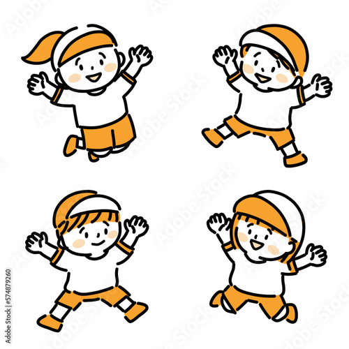 Naklejka premium 体操服でジャンプする子どもたち