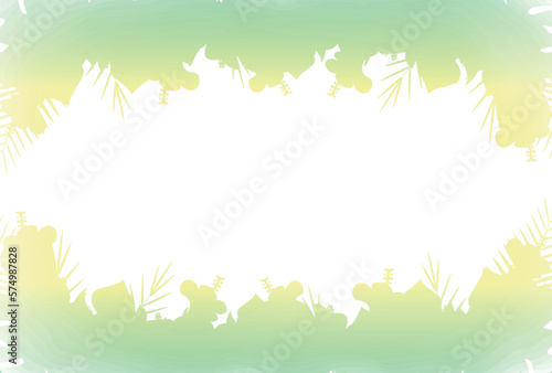 Obraz premium 手描きのモンステラなどの夏の植物シルエットフレーム