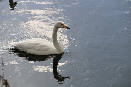 Fototapeta premium 田舎の川にとどまる白鳥 初春の穏やかな日