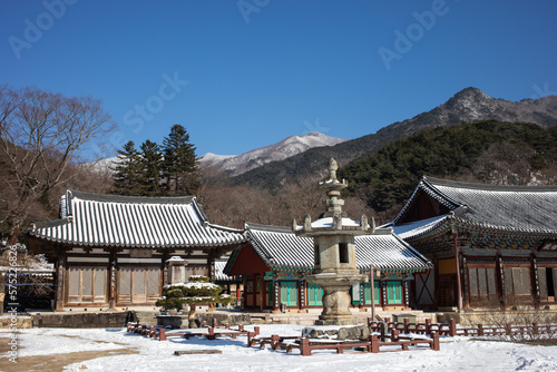 © photok21, Obraz premium 한국의 유명 사찰중의 하나인 지리산 화엄사의 겨울모습